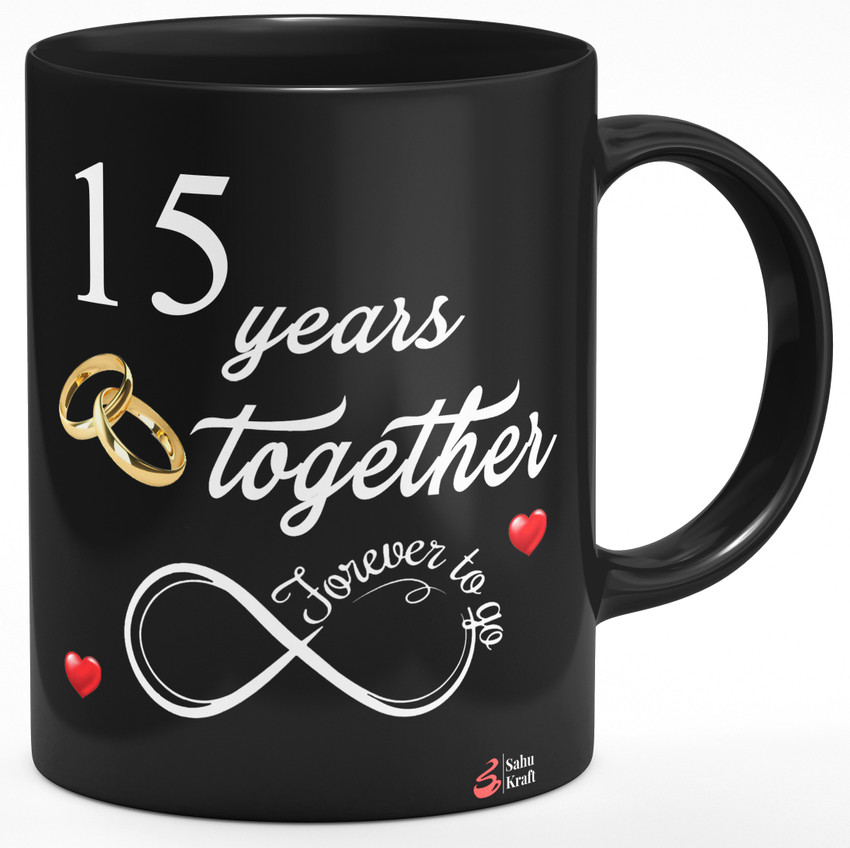 Sahu Kraft Happy 15th Marriage Anniversary Printed Black Coffee 15 Year Together Forever To Go Printed Patch Best Anniversary Gift For Husband And Wife Hubby Wifey Couple Ceramic Coffee