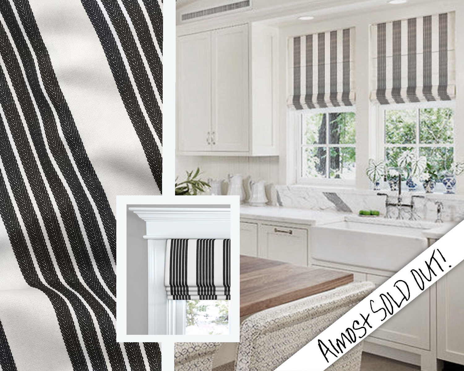 Wide Farmhouse Stripe Roman Shades Custom Made To Size Etsy