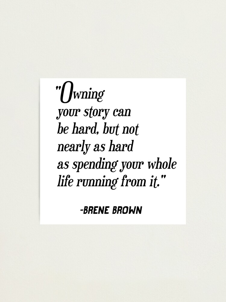 Brene Brown Owning Your Story Can Be Hard But Not Nearly As Hard As Spending Your Whole Life Running From It Quote Brene Brown Quotes Photographic Print For Sale By